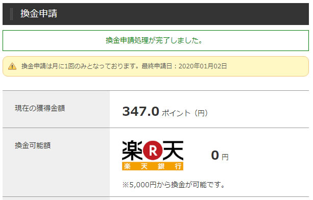 なので5,000円で毎回換金するよりはある程度貯めてから換金した方がいいかもしれません。
